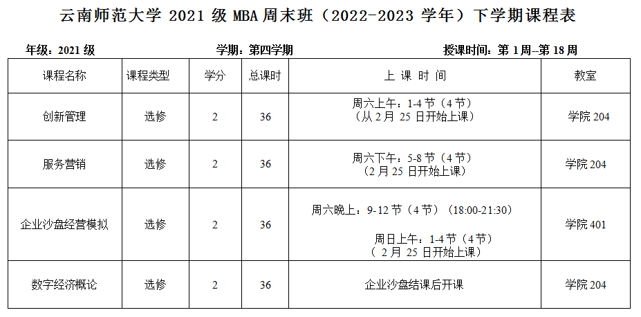 3. 以上安排如遇特殊情况需做调整,以学校通知为准,请学员关注云南师范大学泛亚商学院网站的公告信息。