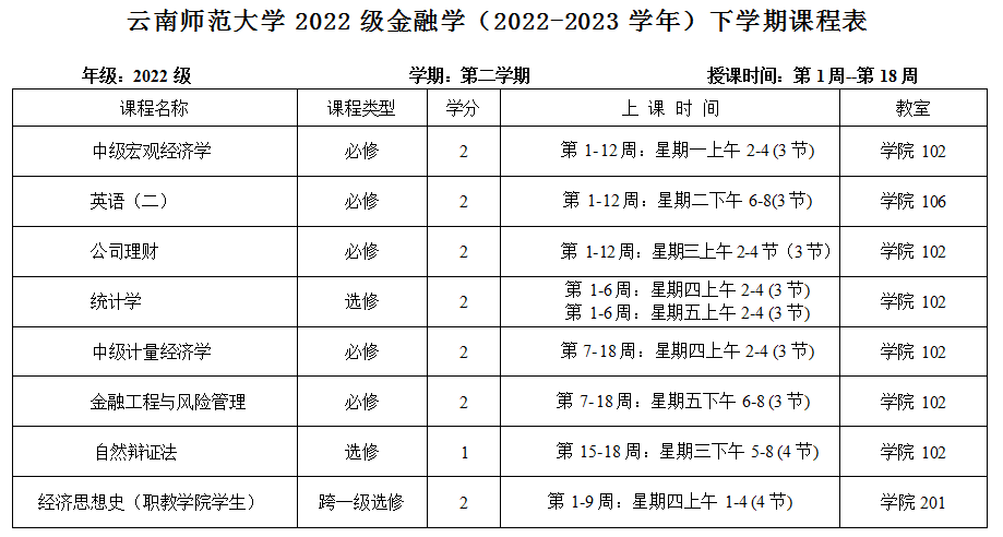 1. 授课时段:第 1 周从 2023 年 2 月 20 日起。