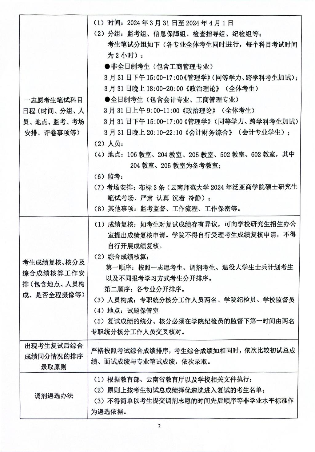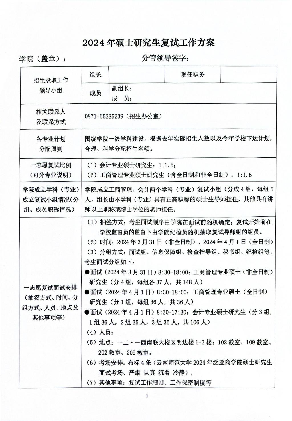 云南师范大学泛亚商学院2024年研究生复试工作方案