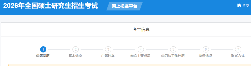 8. 学历校验通过后,依次填写基本信息、户籍档案、家庭主要成员、学习与工作经历、奖惩情况及联系方式。