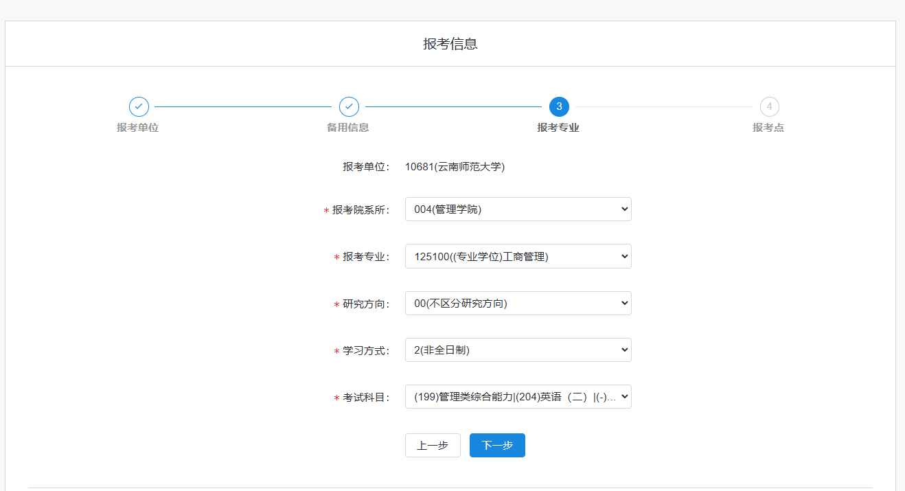 注意:招生单位、考试方式、报考点关键信息不允许修改,若填写错误,只能取消报名信息后,再新增一份新的报名信息。