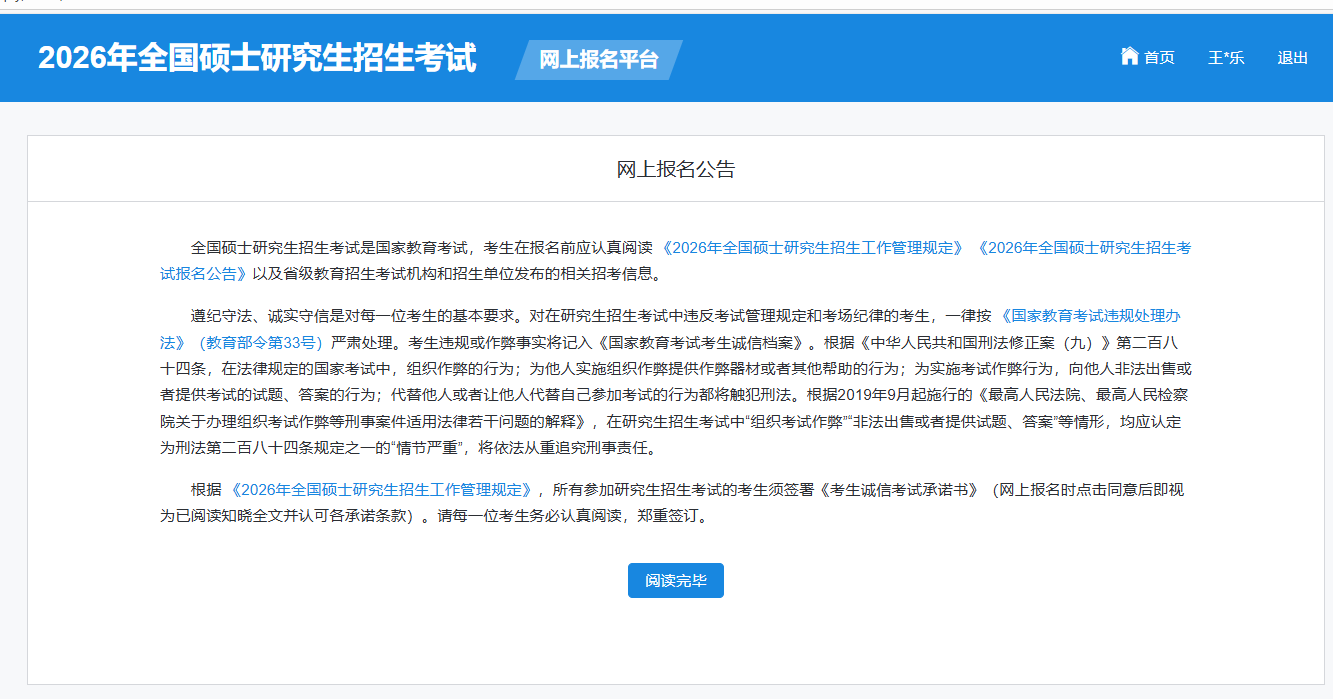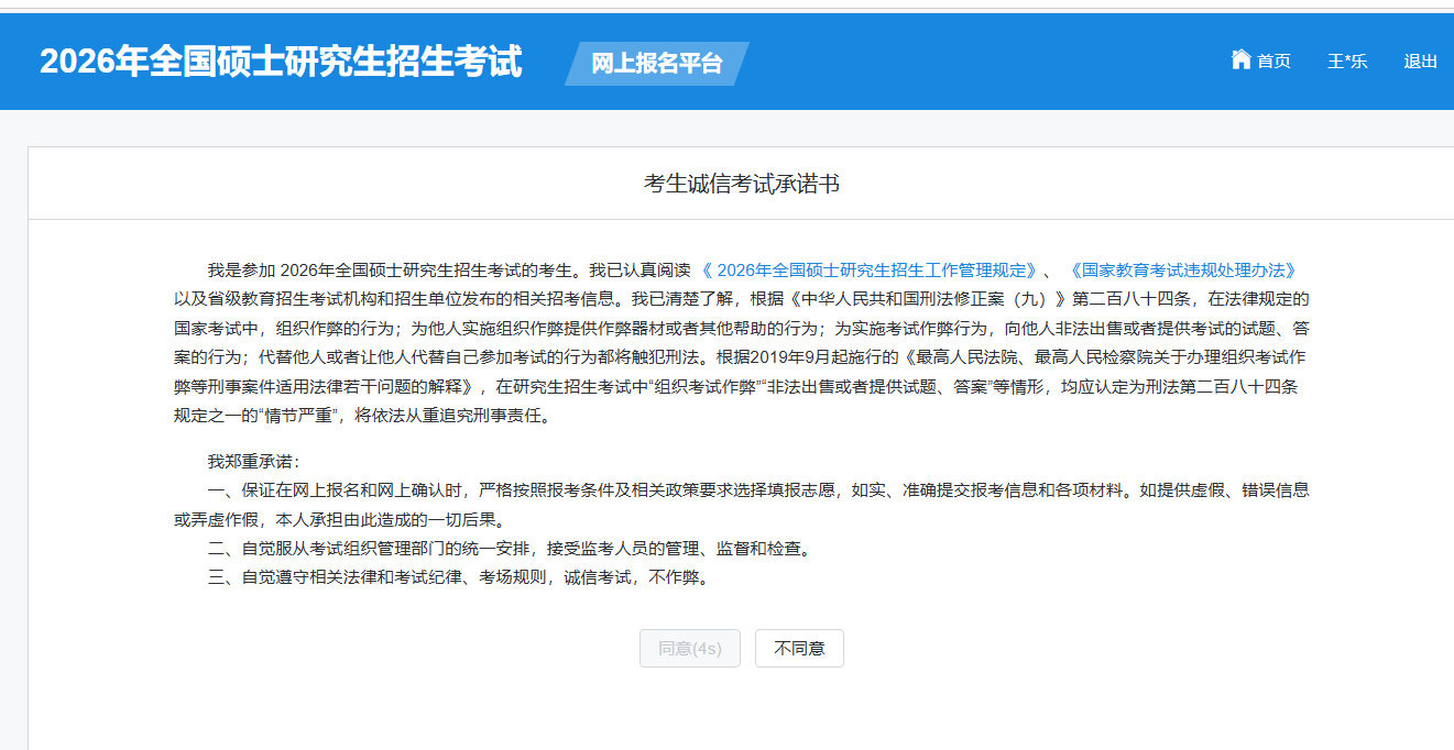 10. 阅读“网上报名公告”及“考生诚信考试承诺书”,并确认考生信息。