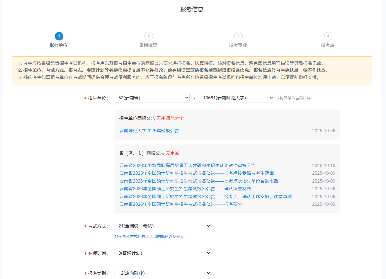 定向就业单位:按当前工作单位信息填写,报考期间就业单位发生变化不会影响考生报考。