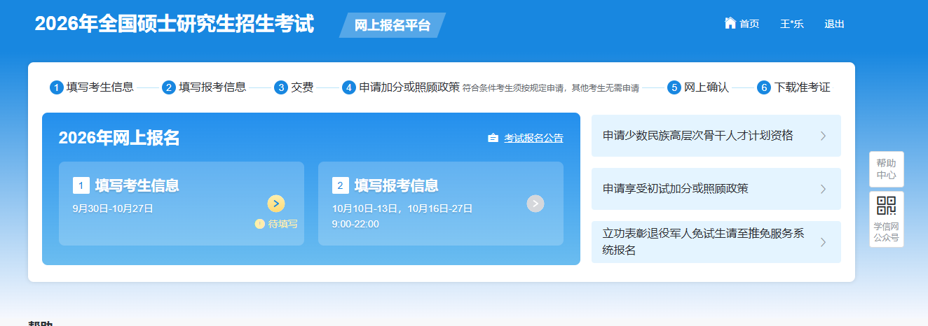 5. 确认报名实名信息,确保信息准确无误。完善报考信息,共7部分,请务必填写完善。
