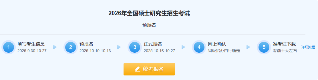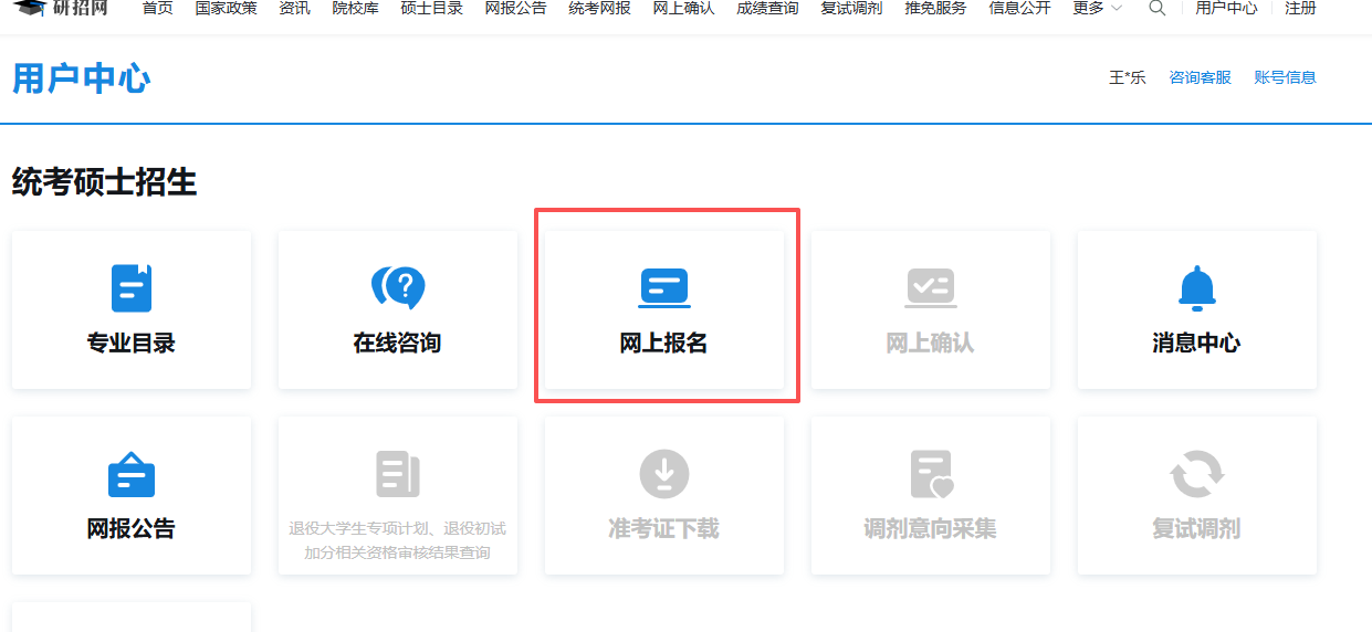 1. 登录“中国研究生招生信息网”(https://yz.chsi.com.cn/),点击“硕士统考网报”-“统考报名”。