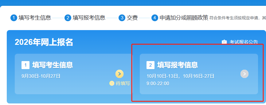 查看及下载网上报名信息功能将在报名结束之后关闭,建议考生报名完成后下载保存报名信息表。且考生未按要求,错选报考点、报考单位、考试方式等,需在网上报名截止时间前重新报名,并按省级管理部门要求交费,逾期亦不再补报。