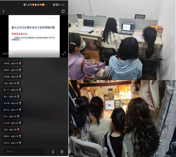 周宁教授结合疫情当下同学们认知、情绪、行为、观念等方面,讲解了疫情下常见的心理反应,同时结合实例给出了心理调适策略,引导同学们接纳现实、规律作息、情绪管理、科学应对。讲座不仅讲授理论知识,还分享了调适方法,同学们通过评论区同老师进行线上互动,交流氛围轻松愉悦。