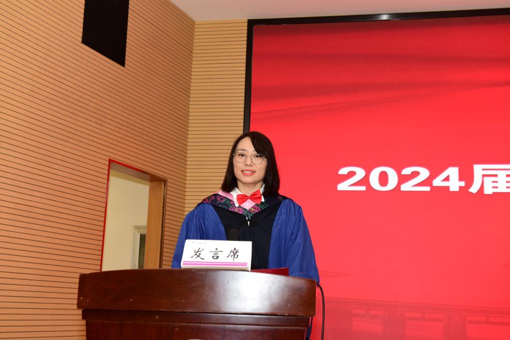 郭秋平老师作为教师代表,首先祝贺毕业生们圆满完成了研究生学业并即将走向人生的新起点。三年的陪伴是师生收获与成长的过程,在相互的鼓励与支持下,留下了彼此难忘的回忆,希望毕业生们带着母校的殷切希望和满满的祝福谱写壮丽的人生华章。