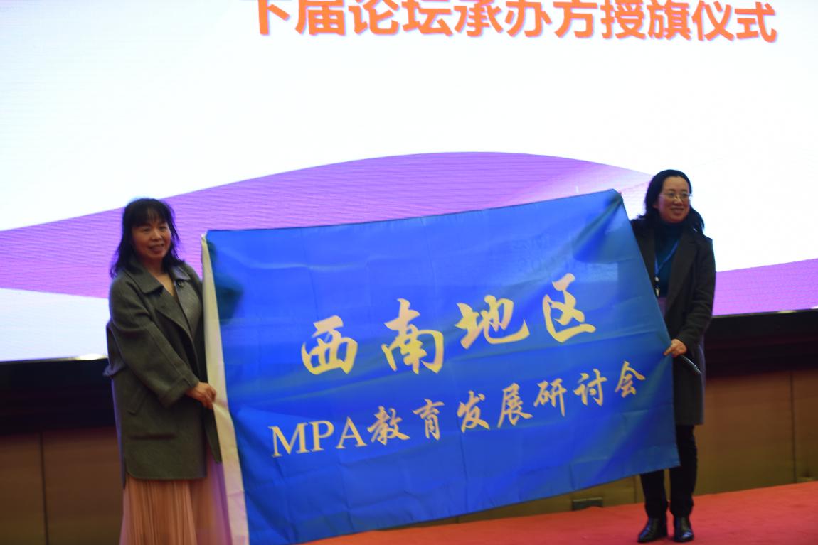 闭幕式上,我校管理学院副院长李艳教授为下一届论坛承办方授旗。贵州民族大学政治与经济管理学院院长王红梅对贵州民族大学承办情况进行介绍,并盛情邀请与会嘉宾相聚贵州。