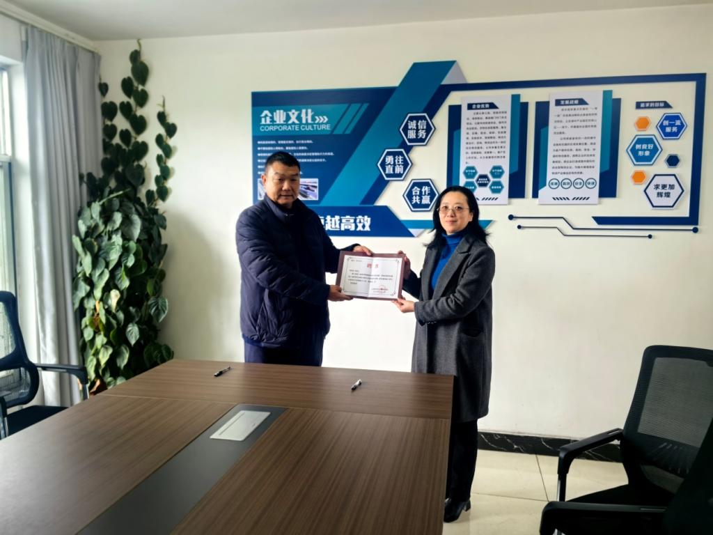 仪式签约后,李艳副院长为沈贵有董事长颁发了校外导师聘任书。
