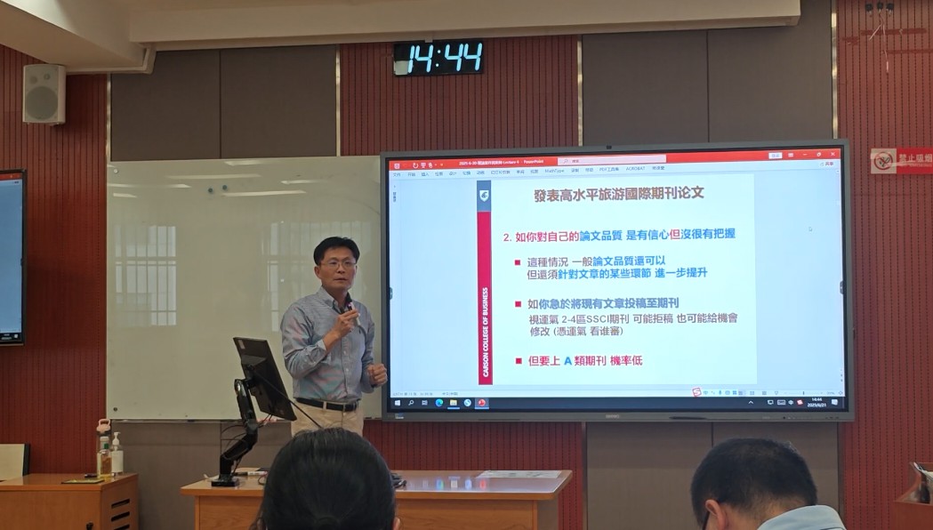 陈明祥教授结合自己在旅游与酒店管理、企业捐赠等,围绕“国际期刊论文写作:思维、方法和技巧”“研究变量间非线性关系与影响:观念、理论模型与实际验证”“研究变量间非对称关系与影响:观念、理论模型与实际验证”“国际期刊论文写作:理论的写作与案例”四个主题展开。