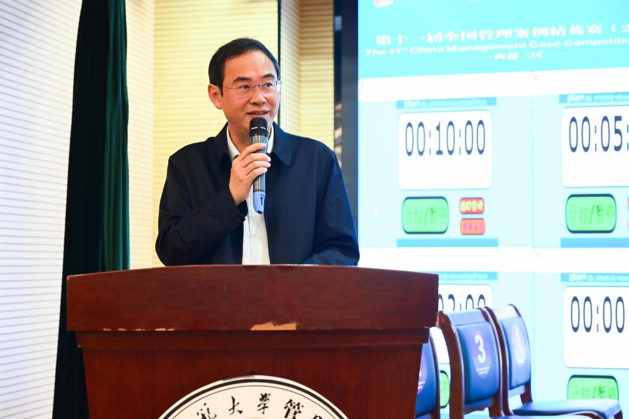 副校长陈飞首先致开幕词。他代表云南师范大学对嘉宾评委、各兄弟院校参赛队伍的到来表示热烈的欢迎。他介绍了云南师范大学的历史,云南师范大学是一所有着光荣革命传统、悠久办学历史、深厚文化底蕴的大学。学校前身是诞生于1938年的国立西南联合大学师范学院。全国管理案例精英赛历经十届的辉煌历程,已经成为国内规模大、覆盖广、赛制严谨、专业水平高的专业赛事,备受各高校商学院瞩目。本次案例大赛以企业真实案例为蓝本,旨在分析和解决实际问题,培养专业学位研究生的实践创新能力。他鼓励同学们通过模拟现实商战,将所学知识用于实践,使自己的综合分析和决策能力得到提升。