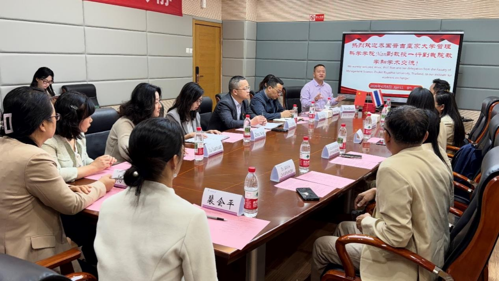 2026年4月8日,中泰两院学术交流研讨会在云南师范大学一二一校区管理学院109(教师会场)、102(学生会场)会议室顺利召开。泰国普吉皇家大学管理科学学院旅游管理系的专家学者及师生代表一行,与我院旅游管理系相聚一堂,围绕两院旅游管理学科研和教学合作展开研讨与交流。会议由周宁副院长主持会议,管理学院党委书记李正升教授、吴剑平副院长、旅游管理系系主任余媛媛、王珍、万荣、杨馨、裴会平、段沂辰参会。泰方吉查诺副教授、本差玛蓬博士、皮蒙叻女士、桑亚博士、尼提蓬先生参会。