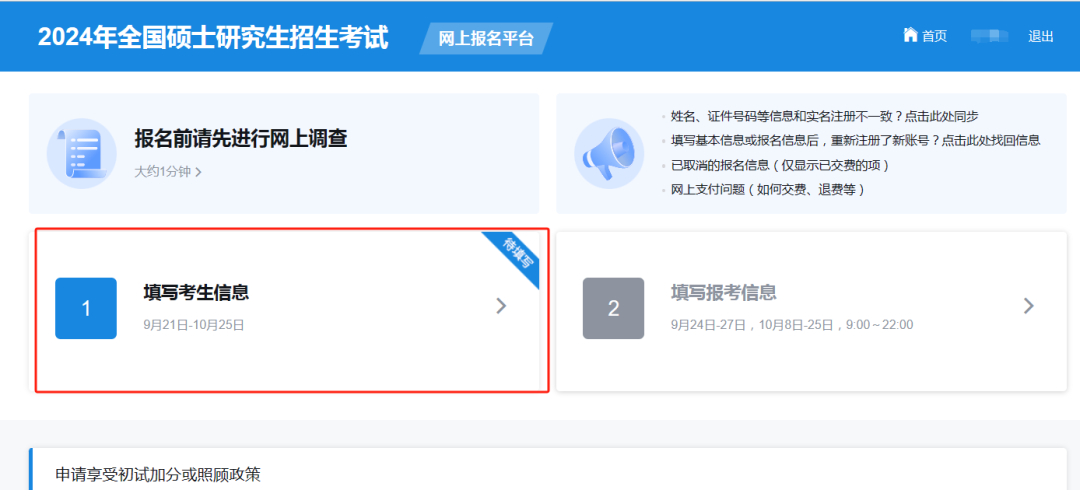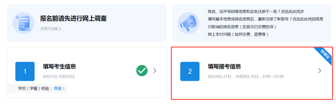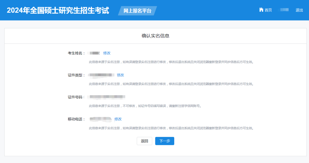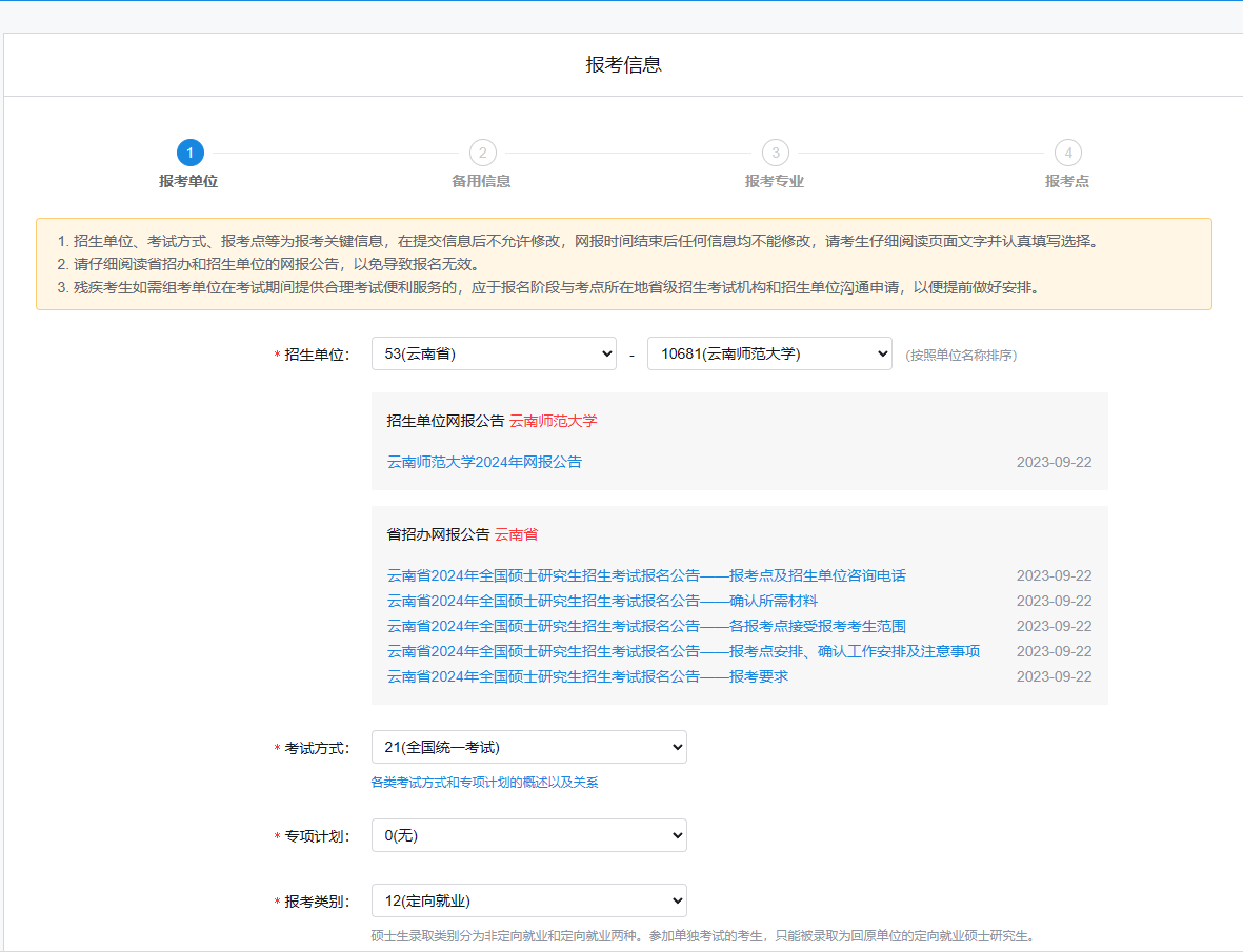 注意:招生单位、考试方式、报考点关键信息不允许修改,若填写错误,只能取消报名信息后,再新增一份新的报名信息。