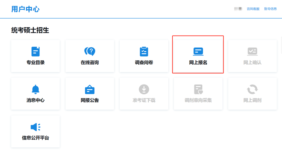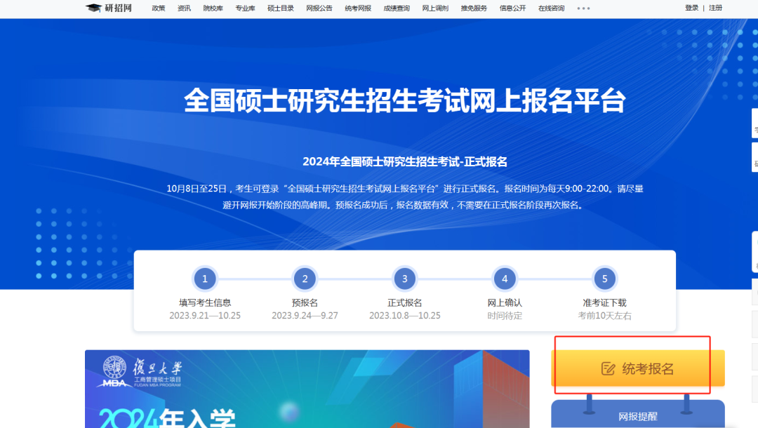 1.登录“中国研究生招生信息网”(https://yz.chsi.com.cn/),点击“统考网报”-“统考报名”。