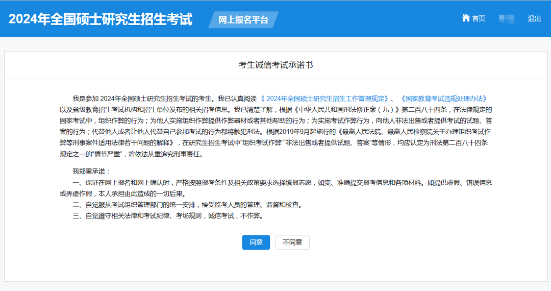 11.阅读“网上报名公告”及“考生诚信考试承诺书”,并确认考生信息。