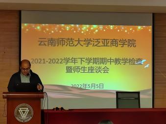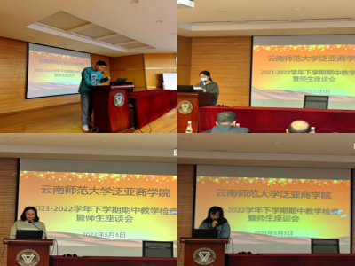 为进一步加强我院教学质量监控,规范教学管理,改善学习环境,提高管理服务水平。学院于2022年5月5日下午在106报告厅举行了期中教学检查师生座谈会。参与本次座谈会的有李正彪院长、李艳副院长、检查小组成员、学院任课教师、教务办、学生办老师以及研究生代表,教务办郭秋平老师主持会议。