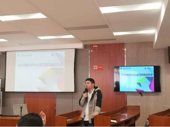 11月5日下午,我院会计系在学院502召开了“2020级MPAcc实习实践动员会”,分管教学的李艳副院长、教务办杨冬燕老师,辅导员王鑫老师及2020级MPAcc全体学生参加会议。会议由会计系主任代飞老师主持。