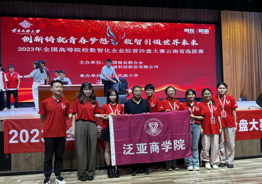 9月23日,由中国商业联合会、新道科技股份有限公司和云南民族大学联合承办的2023全国高等院校数智化企业经营沙盘大赛云南省选拔赛在云南民族大学顺利举行,泛亚商学院两支研究生代表队在此次比赛中经过激烈角逐,分别获得省级二等奖和三等奖。