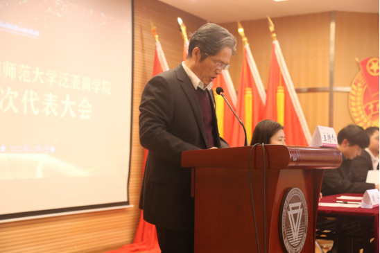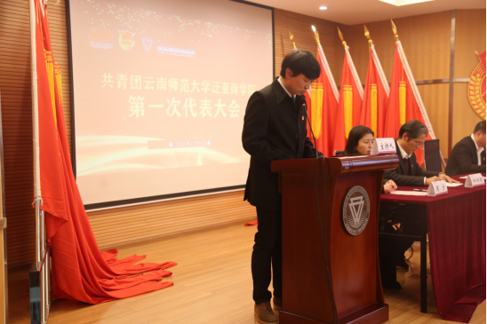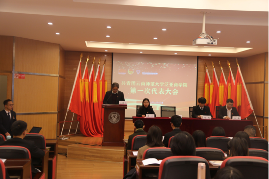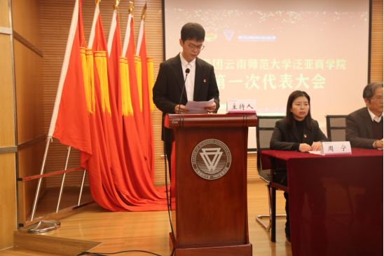 开幕式后,大会进入第二阶段。首先,学院团委负责人王鑫作了题为《青春践行中国梦,不忘初心跟党走,为实现中华民族伟大复兴贡献青春力量》的工作报告,回顾了泛亚商学院团委围绕思想引领、基层团组织建设、实践创新等开展的各项工作。他表示,未来学院团委将进一步完善组织机制,扎实做好团的各项基础工作,在做好学校和学院各项常规工作的同时,创新和突破工作瓶颈,扎实推进我院共青团品牌工作建设,打造富有特色和新意的泛亚商学院共青团工作品牌,服务团员青年成长成才。随后,根据大会流程,选举产生了共青团云南师范大学泛亚商学院第一届委员会委员,通过了《关于共青团泛亚商学院第一次代表大会工作报告的决议》,大会在《团歌》声中落下帷幕。