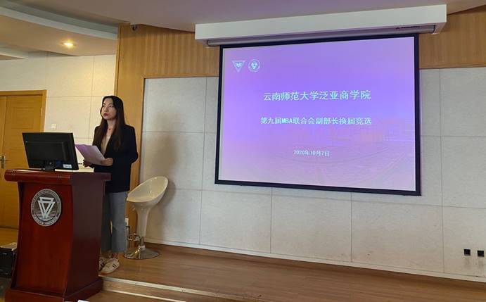 2020年10月7日,我院在204报告厅成功举行了“云南师范大学泛亚商学院MBA第九届联合会副部长纳新及联合会工作统筹会”, 出席本次竞选的有第九届MBA联合会副主席秘书处连俊鑫、学术部李学连、公益部张亚芳、文体部王东、外联部韩刻铭、宣传部张宗荣,会议由公益部张亚芳主持。经过现场30多名竞选人风格各异、激情澎湃的讲演,主席团评委严谨认真的提问打分,最终评选出18位优秀的联合会新成员。
