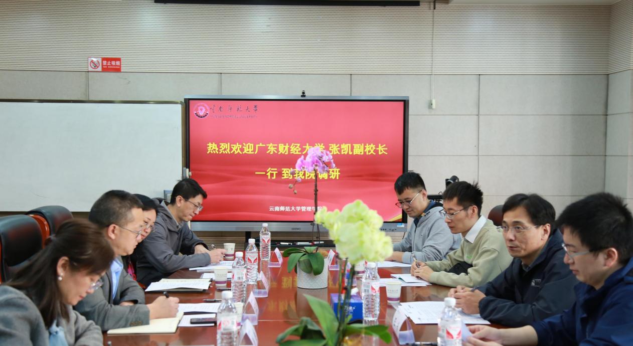 秋风起兮白云飞,喜迎粤地尊客归。2024年10月11日下午,广东财经大学党委常委、副校长张凯一行赴我校交流调研。管理学院党委书记李正升,副院长李艳,学院韩越教授、昆明理工大学文淑惠教授等专家参加会议。