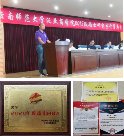 通过三年在云师大的学习,吴罕感触良多,他也给各位学弟学妹送上了自己对MBA学习的心得和对学院的祝福: