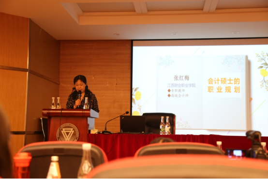 第二阶段为就业交流分享环节。有着20年以上从业经验的2019级集中班张红梅,她结合自身经历告诉同学们“学无止境”,并就如何面试和适应新环境等方面进行了分享。她提出了学历+证书的模式,鼓励在校学生考证以提升就业竞争力。