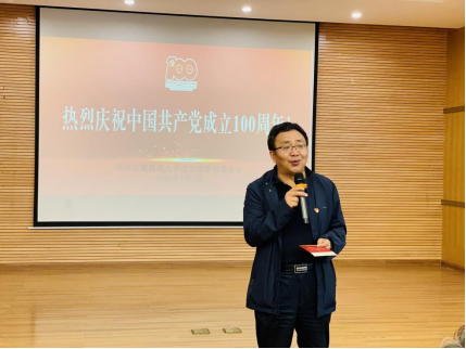 同时,学院为7月入党的杨永生同志过政治生日,杨永生同志分享了自己的入党经历,也对同学们寄语了期望。张云保同志作为2021年新发展党员代表发言,在特殊的日子许下承诺,将为社会主义建设贡献自己的力量,为实现共产主义奋斗终身。