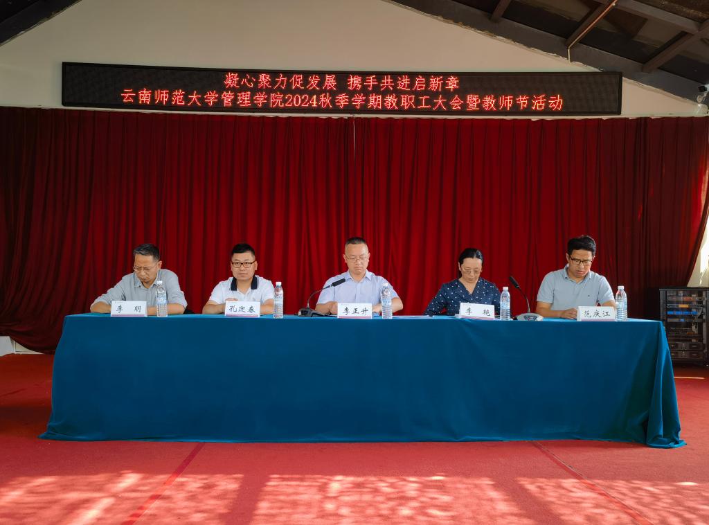 9月5日下午,云南师范大学管理学院成功召开第一次教职工大会暨教师节工会活动。本次活动以“凝心聚力促发展、携手共进启新章”为主题,旨在展望未来,凝聚共识,推动学院高质量发展。